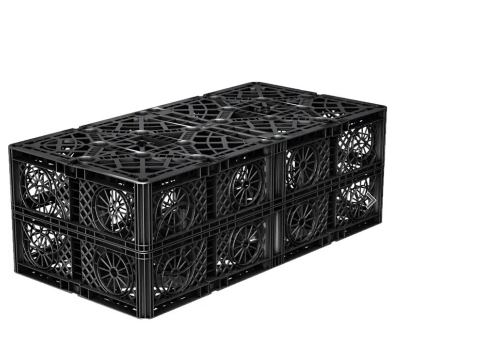 sort regnvandskassette til nedsivning af regnvand tåler trafiklast på op til 10 tons pr. m²