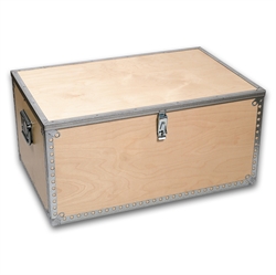 Trækasse med låg i finer med forstærkede kantbånd, stærke bæregreb