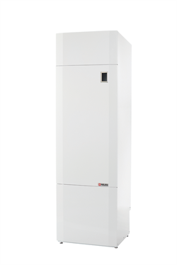 Ventilationsanlæg med varmegenvinding og brugsvandsproduktion. CTS 602 styring - integreret fugtstyring - 180 l vandbeholder - 1,5 kW elpatron i varmtvandsbeholder og offeranode som korrosionsbeskyttelse. Brugervenligt HMI betjeningspanel med touch