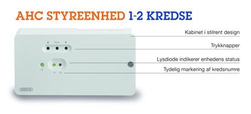 Wavin AHC 9000 Styreenheden kan styre 1 eller 2 kredse og anvendes normalt ved renovering, hvor der skal installeres gulvvarme i 1 eller 2 rum.