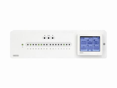 Styreenheden kan styre op til 16 kredse. Hver enhed kan styre op til ialt 48 enheder (magnetkontakter og rumtermostatet).
