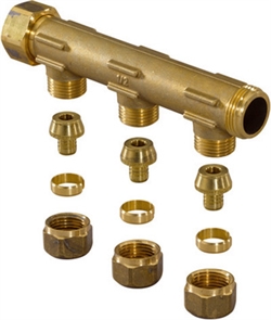 • Uponor fordelerrør 3/4" med fast muffe - 4 afgreninger 15 mm